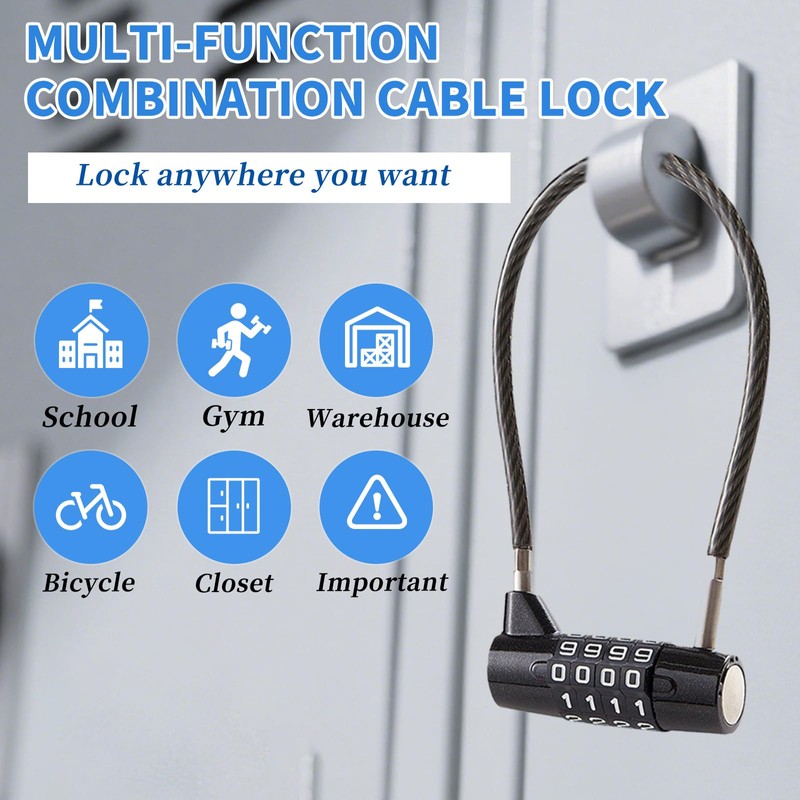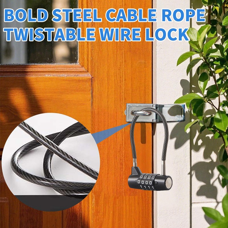 - ☄️【High Security】:Our long padlock features a 5mm thick rubber-coated steel cable, has undergone rigorous testing, prevents cutting, prying, and theft.This lock is a four-digit code, which is more difficult to open and more secure than a three-digit combination lock.No key is required, so there is no need to worry about trivial issues such as key loss.