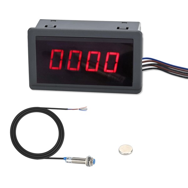 4-Digit Red Led Tachometer, 220V Ac Tachometer Display Tachometer Motor Speed Meter with Hall Sensor Magnet Sensor