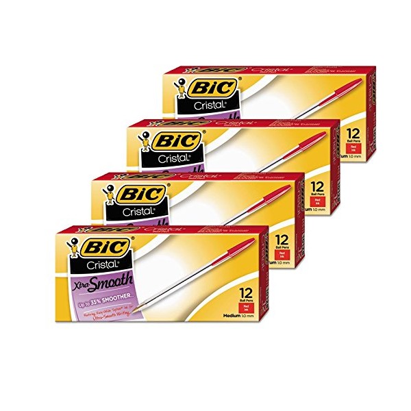 4 DOZEN: Cristal Xtra Smooth Ball Pen, Medium Point (1.0 mm), Red, 12-Count MS11