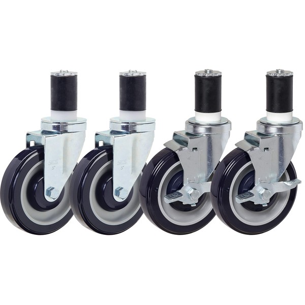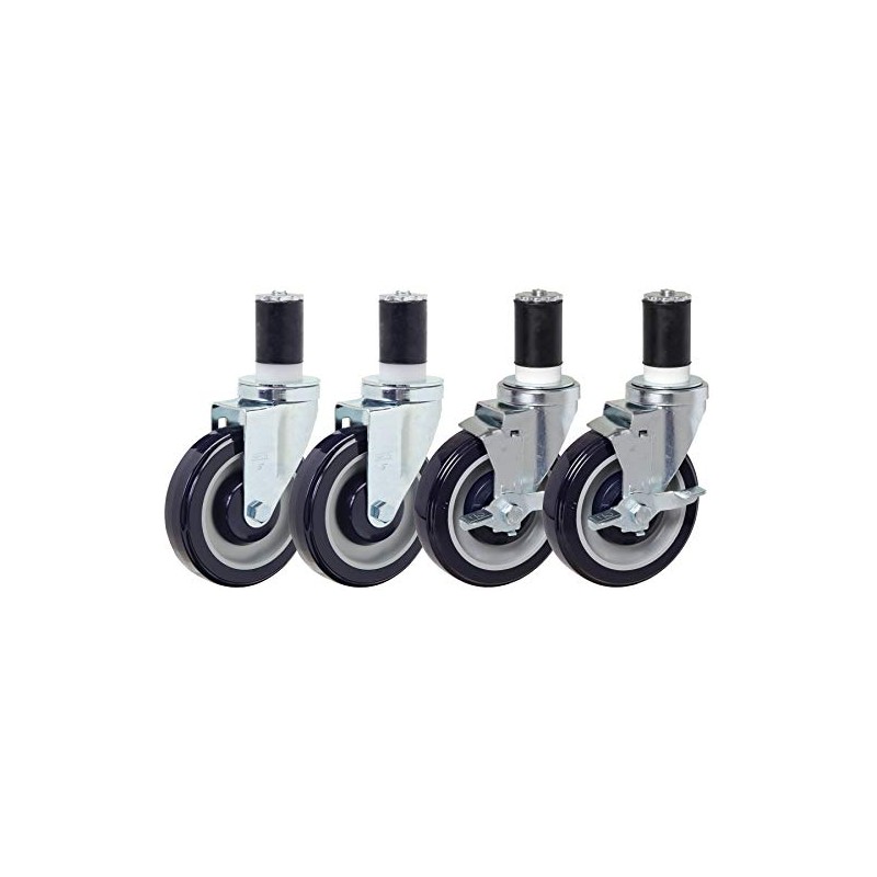 This listing is for one SES brand 4x1-1/4" swivel polyurethane caster kit (2 locking and 2 non-locking) for work tables, food prep tables, or any other equipment with round tube legs with a 1-3/8" ID.