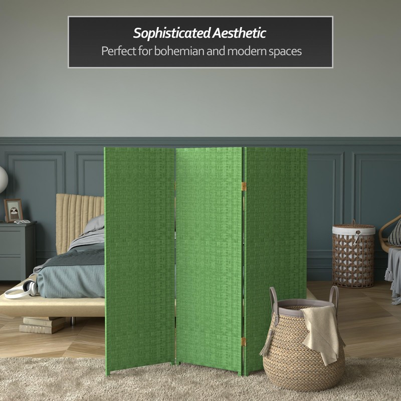 4 ft. Short Woven Fiber Folding Screen - Light Green - 3 Panel
