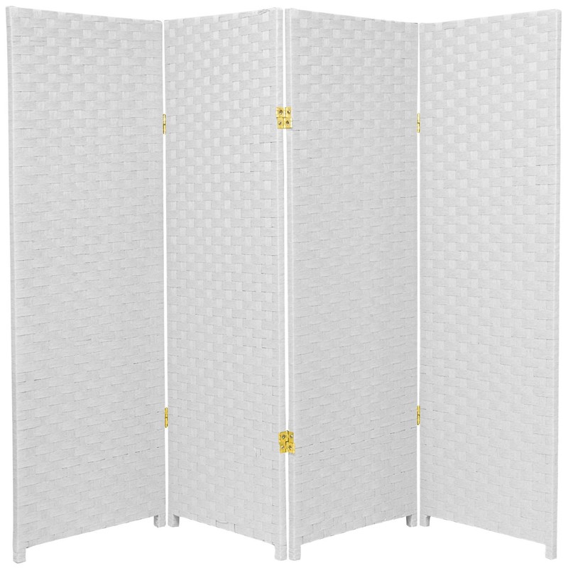 4 ft. Short Woven Fiber Folding Screen - White - 4 Panel