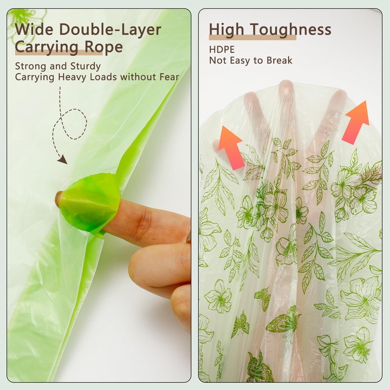 - [EASY DRAWSTRING CLOSURE] Features a convenient drawstring design that makes it easy to tie up and dispose of trash without the need for tearing.