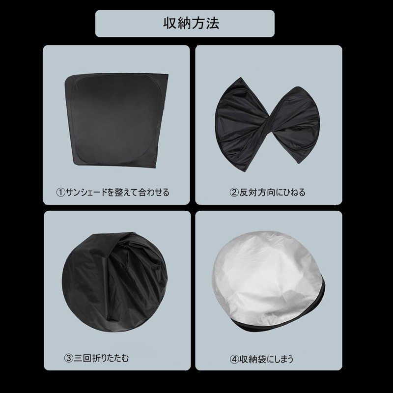 - 収納も非常に便利です。本製品は形状記憶合金で作られており、折りたたむことでコンパクトに収納できます。 小さく折りたたんでドアポケットに収納できる、とても使いやすいサンシェードです。