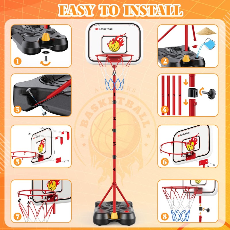 - Adjustable Heights for Growing Kids: Toycost kids basketball hoop can be adjusted height options of 46.1" and from 50.39" to 75.6". If you choose baseball mode, the height will be 37.9" and from 44.5" to 72.8". Toddler basketball hoop indoor is deal for kids aged 3-8. Easy to assemble by iron pole ordinal number marked, your kids are able to adjust height by themselves. Kids basketball grows with your child, helping them develop hand-eye coordination and sports skills at every stage.