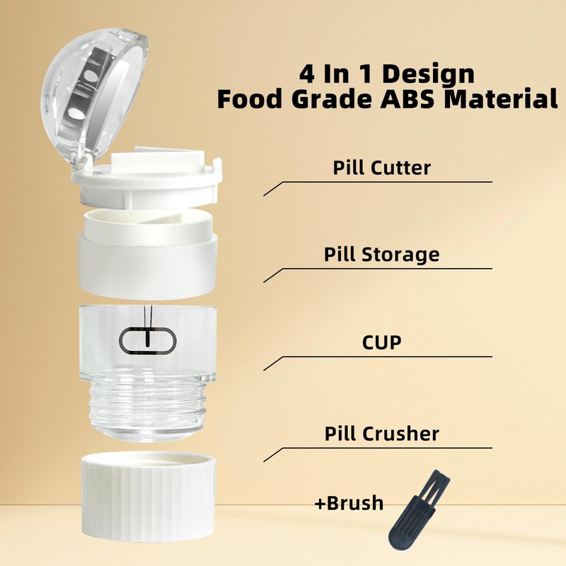 4-in-1 Pill Crusher and Pill Cutter,Pill Crusher Fine Powder,Pill Cutter for Small or Large Pills,Vitamins, Tablets, Stainless Steel Blade, Removable Drinking Cup