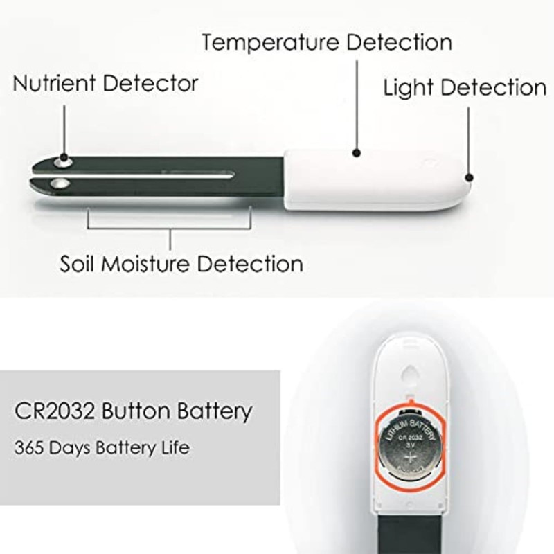 • Automatic fertility monitoring: the soil moisture meter uses 4 EC sensors to accurately capture nutrients in the soil and convert them into scientific data displayed on a smartphone. This database provides perfect nutrient values for different plants. The EC sensor is made of stainless steel, which increases reliability in long-term use of soil-based flower care.