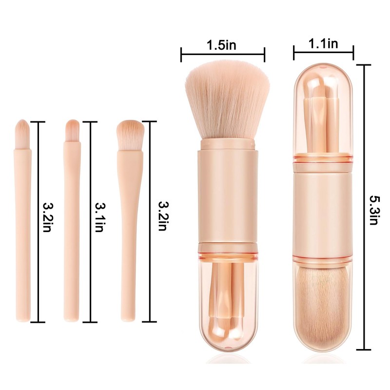 4-in-1 Portable Makeup Brush Set, Retractable Makeup Tool for Quick Application, Soft Bristles, Travel-Friendly, for Beginners and Professionals