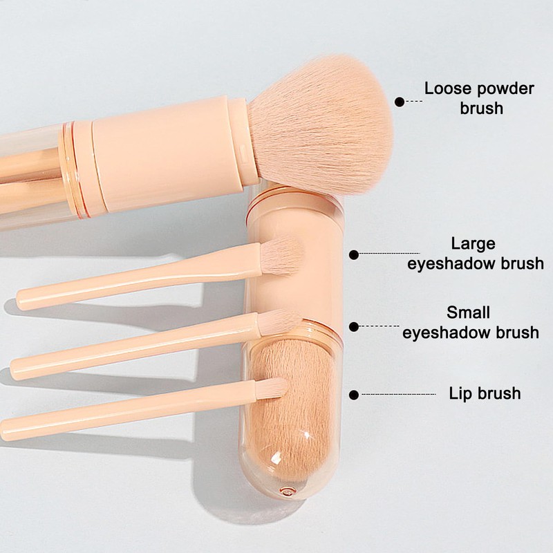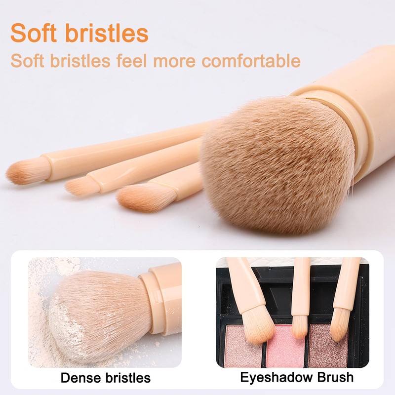 4-in-1 Portable Makeup Brush Set, Retractable Makeup Tool for Quick Application, Soft Bristles, Travel-Friendly, for Beginners and Professionals