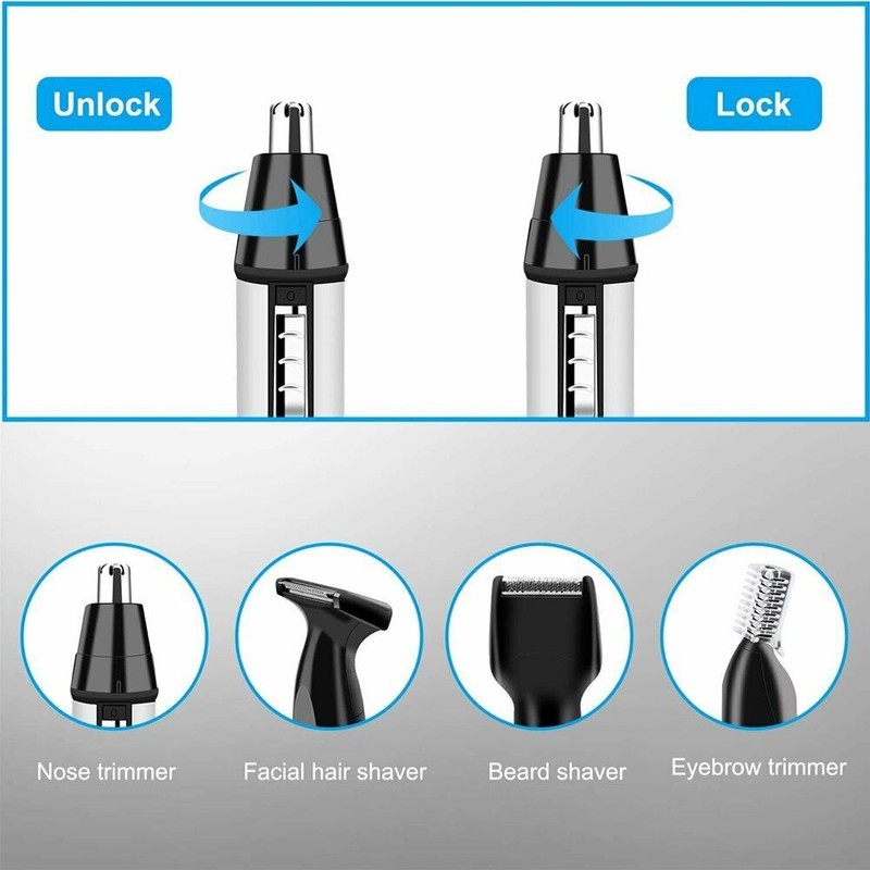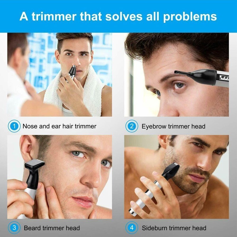 4 in 1 Rechargeable Eyebrow Ear Nose Beard Trimmer Set Mens Hair Clipper Shaver
