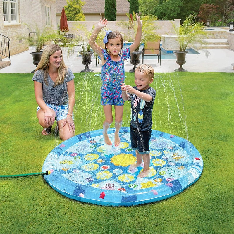 - FLOATING OCEAN ANIMALS: This splash pad has ocean characters that float around the outside rim (patent technology) while multiple sprinkles shoot up and into the splash pad area. Kids will have fun splashing around as they chase the cute fish.