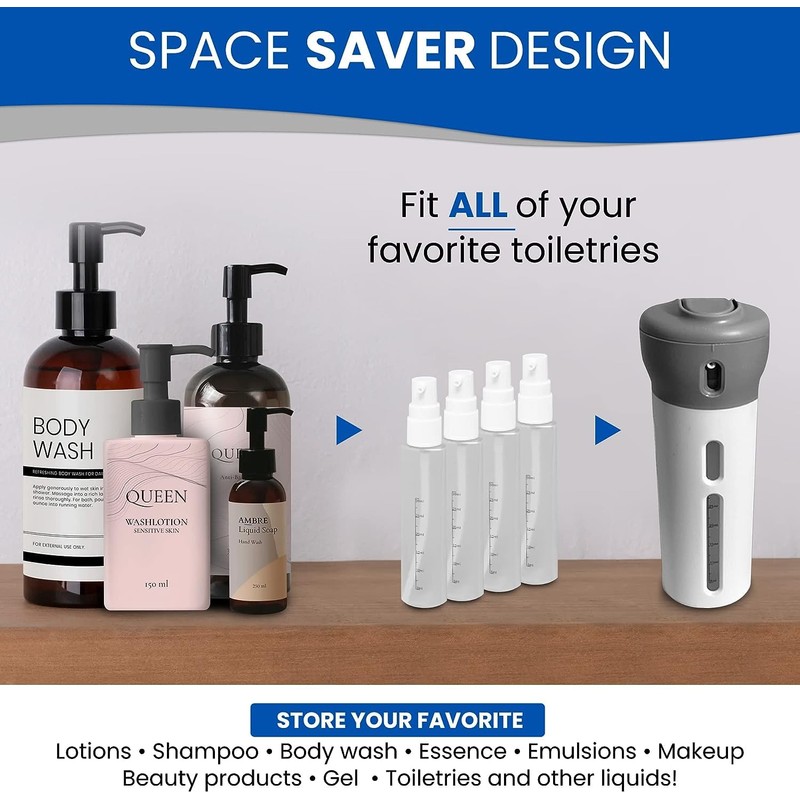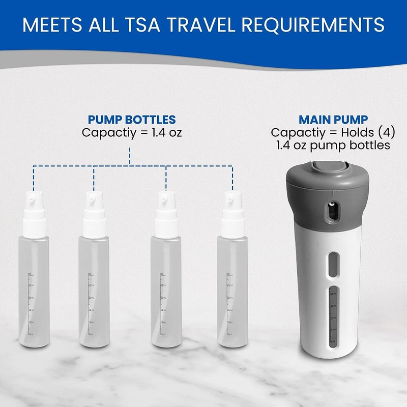 - [ TSA Compliant & Leak Proof ] – We assure you that this 4-in-1 travel liquid dispenser meets all TSA travel requirements! Never worry about getting this device confiscated when going through airport security. It is also 100% leak proof to prevent any mess in your luggage or damage to your items.