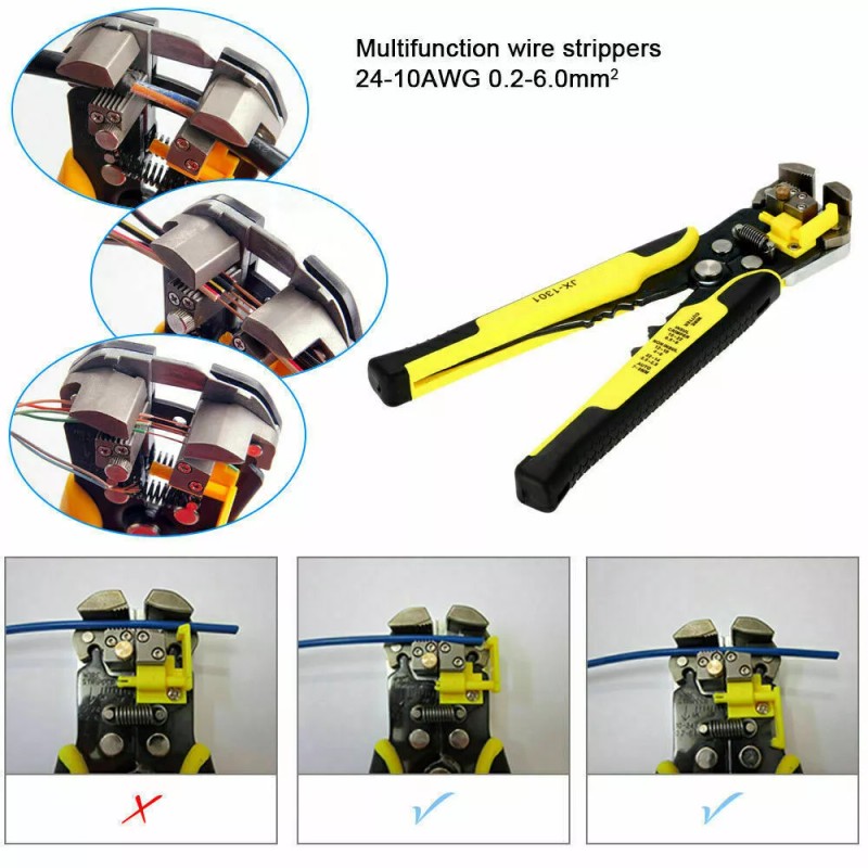 The wire crimper features convenience, efficiency and harmlessness to the cable cores. It is easy to use just hold the handle and manipulate it once to successfully press tight the wire and terminal blocks.