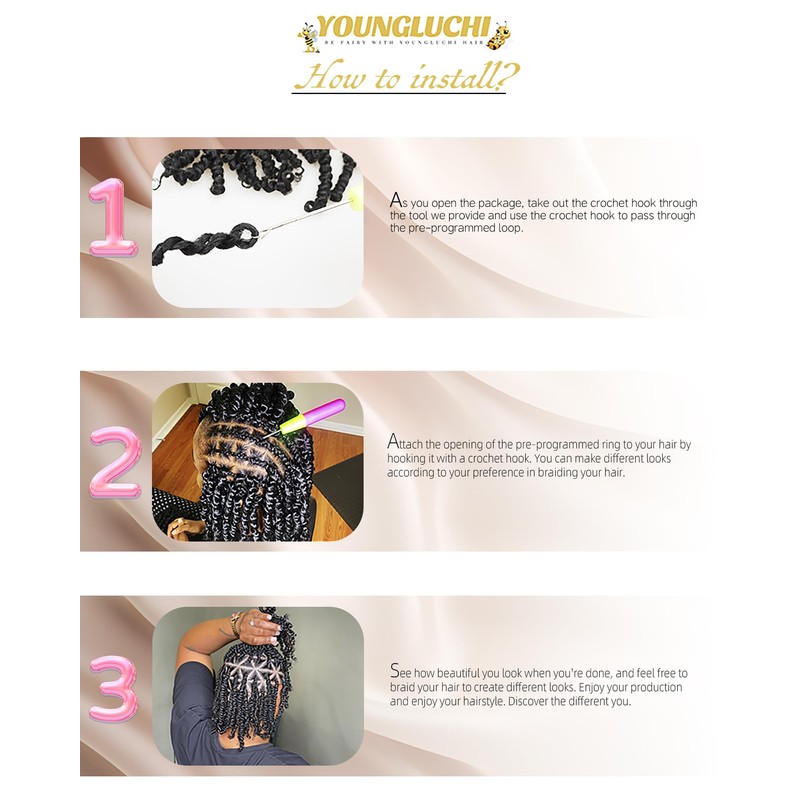 - Fasion Style:Youngluchi Pre-twisted Passion Twist Crochet Hair Is Made Of Spring Kinky Twist Bohemian Curls With High Quality Flame-retardant Hot Water Setting Low Temperature Synthetic Fiber.