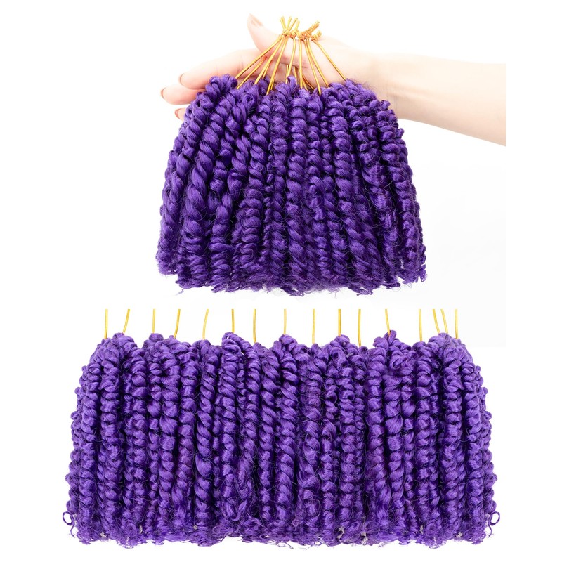 4 Inch 7 Packs Super Short Passion Twist Crochet Hair for Black Women and Kids-Purple Pre Looped Pretwisted Soft Hair Extensions,Braided by Synthetic Spring Kinky Twist Bohemian Curl(4"-7P,Purple)