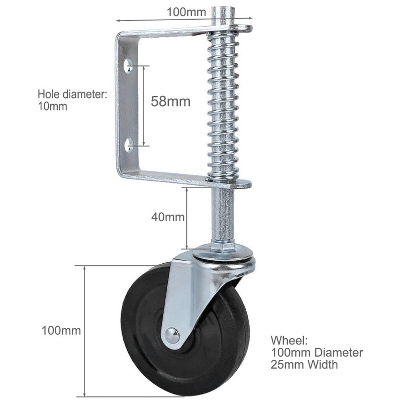 4 Inch Gate Spring Swivel Castor, 4 Inch (10 cm) Spring-Loaded 360 Swivel Fence Gate Castor Heavy Duty Rubber Wheel with Spring Shock Absorption Universal Bracket, Black