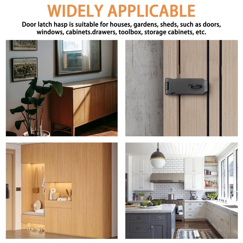 - 【Padlock-Ready & Weatherproof】4-inch design accommodates standard padlocks for added security. Weather-resistant and heavy-duty, this hasp lock is ideal for sheds, toolboxes, and external doors—upgrade to a rust-proof, high-strength solution today