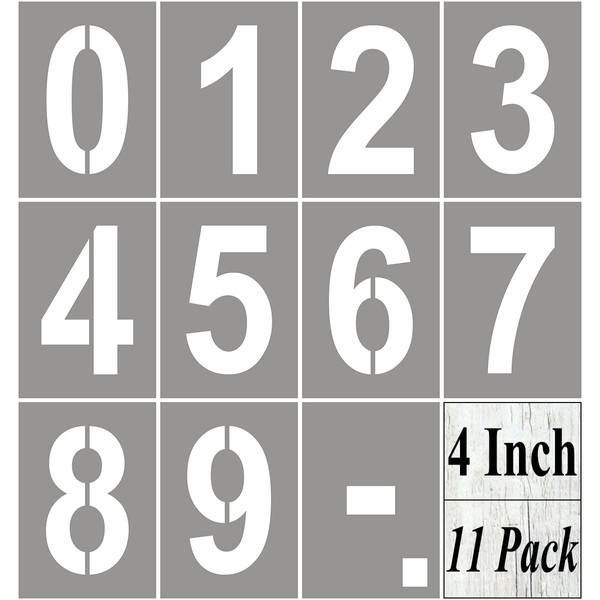 4 Inch Large Number Stencils for Painting - 11 Pack Number Stencil Templates for Curb Address, Cakes, Cookies, Mailboxes and Crafts, Reusable House Numbers Stencils for Wood Signs & Cement Wall Art