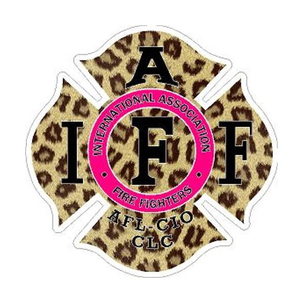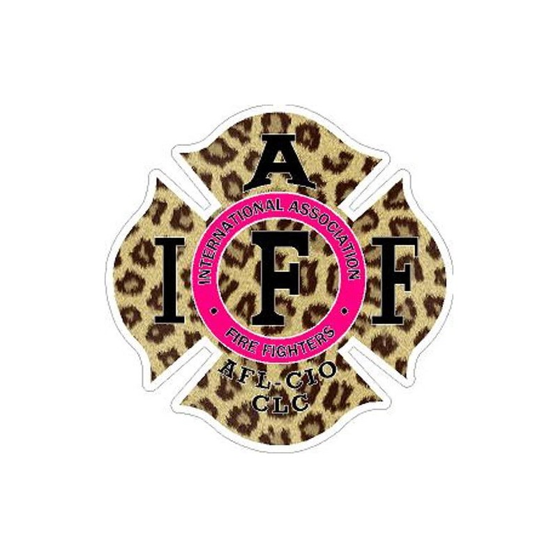4 Inch Reflective Pink Cheetah Print IAFF Maltese Cross Firefighter Sticker