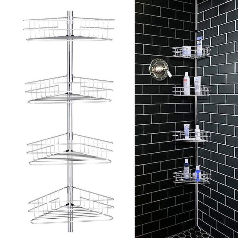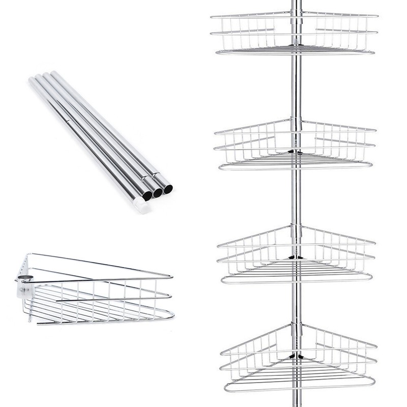 4 Layer Rustproof Bathroom Corner Shelf Shower Caddy Shower Tension Pole Caddy