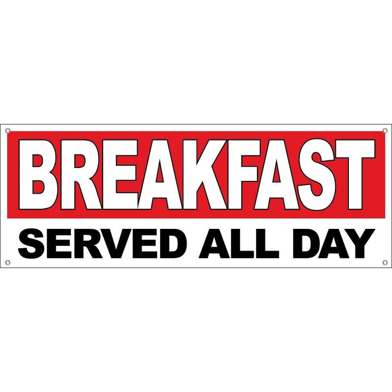 4 Less Co 18x48 Inch Breakfast Served All Day Vinyl Banner Sign With Grommets rwb