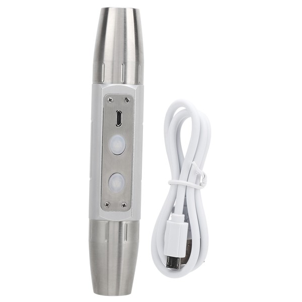 1、The flashlight is made of high‑quality stainless steel and aluminum alloy materials, strong and durable. 2、The double head has four light sources, which can meet the needs of different jewelry identification. 3、Equipped with large capacity built‑in battery and USB charging design, convenient and practical. 4、Adopt high‑quality LED lamp chips, which has high power efficiency and long service life. 5、With the mode includes white (high‑low), yellow (high‑low), 365 purple and 395 purple.