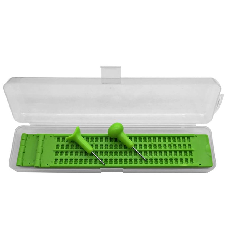 - [Easy to travel with]: The small braille writing slate is lightweight and portable, made of quality plastic, the slate's weight is only 55g. with the attached plastic box, it can be carried around.