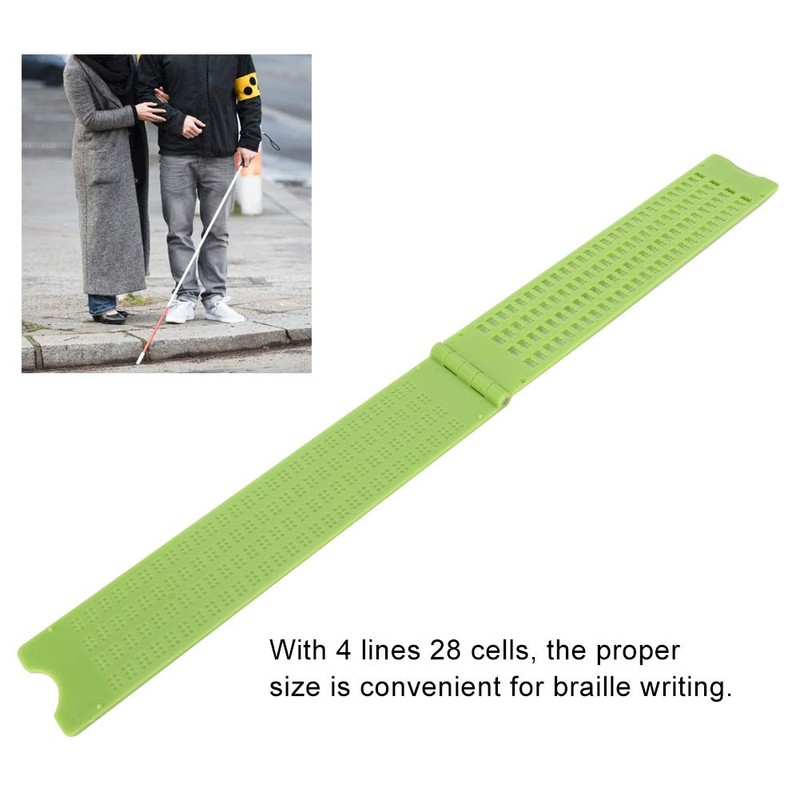 BRAILLE WRITING SLATE: Made of quality plastic material, sturdy and for long time use.BRAILLE TYPEWRITER: With 4 lines 28 cells, the proper size is convenient for braille writing.