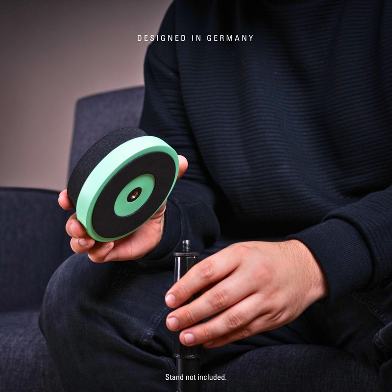 - OF NOTE: you can mount this pad onto any cymbal stand; on the bottom is a universal 8 mm threaded connector to spin the pad in place on your stand—it's recessed to not scratch your desk or table
