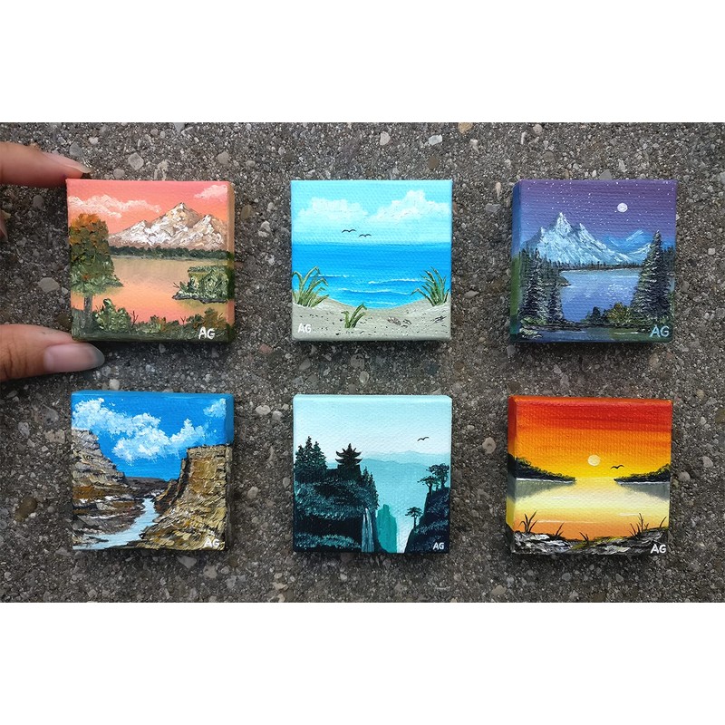 - ✍🎨🏡🌅 DOUBLE PRIMED WITH HIGHLY PIGMENTED PRIMER 100% COTTTON: Colour white: These artist canvases are treated without the use of acids, adding to their fine texture and durability. Mini canvases are ideal choice for painting acrylic, oil, watercolour. Ideal for miniature paintings and place cards.