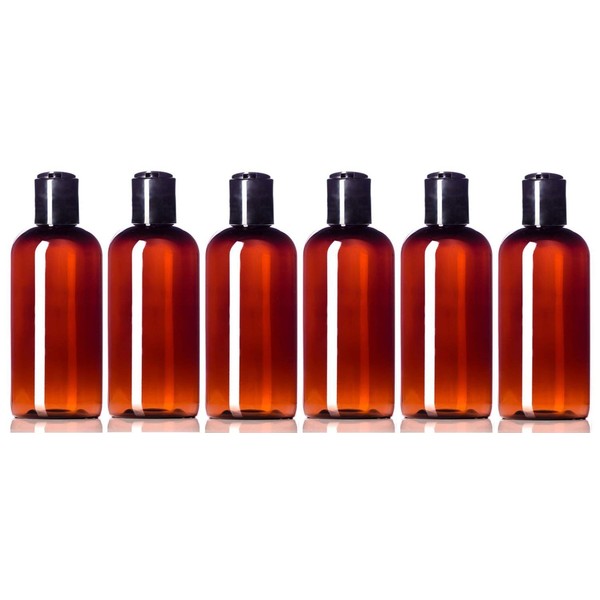 4 oz Amber PlasticBottles - 6 pack - Squeezable - BPA Free- Shampoo, Lotion, Antibacterial Liquid Soap (4oz)