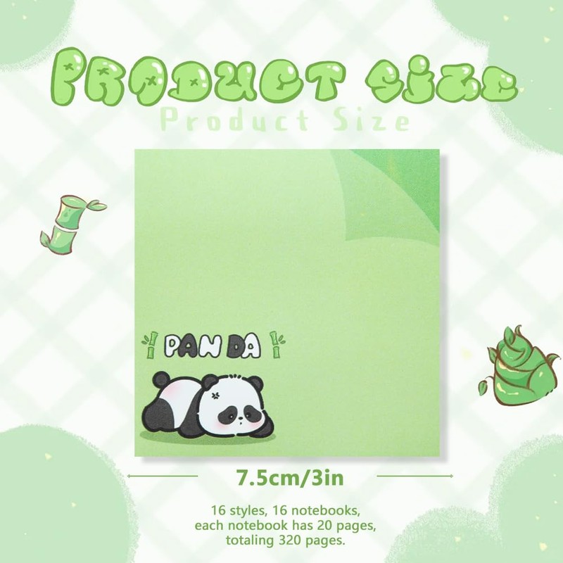 - 【16 Different Panda Sticky Pad】4 different themed designs, Panda Paradise, Protecting Pandas, Simple Pandas and Cute Pandas. Each theme features unique panda patterns and vibrant colors.