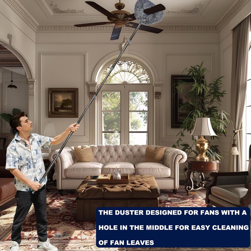 - Versatile Application: Say goodbye to dust and spider webs. This duster kit is perfect for cleaning high ceilings/glasses, external walls, fans, air vents, lampshades, home appliances, cars, picture frames, bookshelves, and sofas.