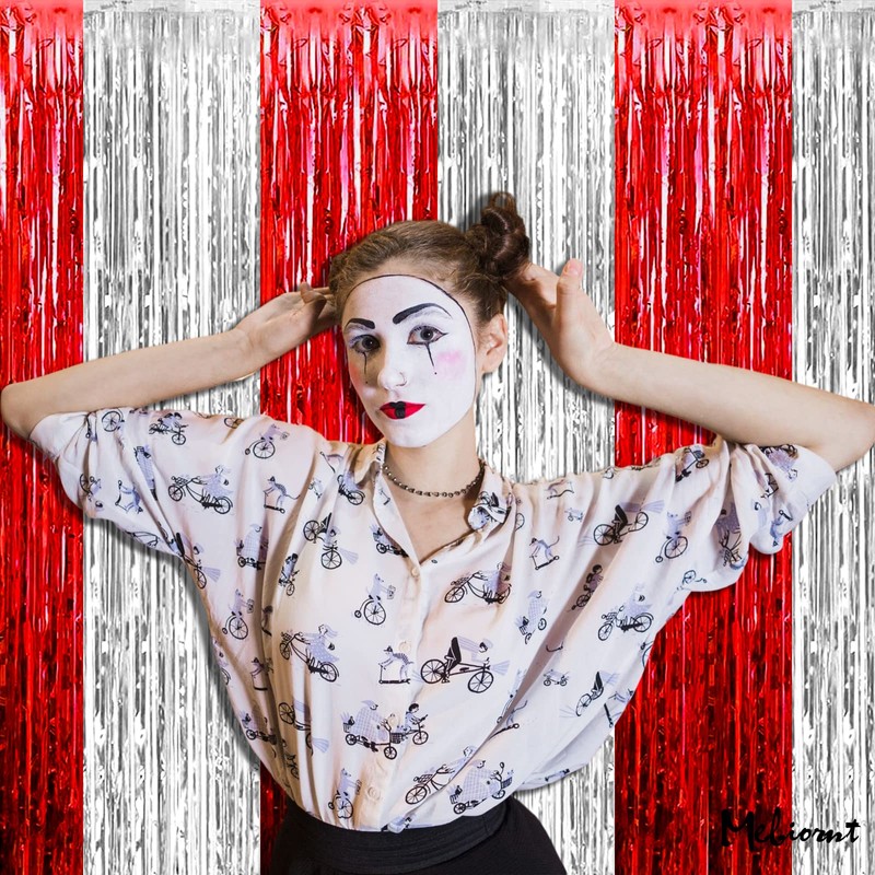 4 Pack 3.2Ft x 8.2Ft Red and Silver Fringe Curtain Backdrop, Metallic Tinsel Foil Fringe Streamers Curtains Background for Photo Booth Wedding Circus Welcome Carnival Birthday Party Decorations