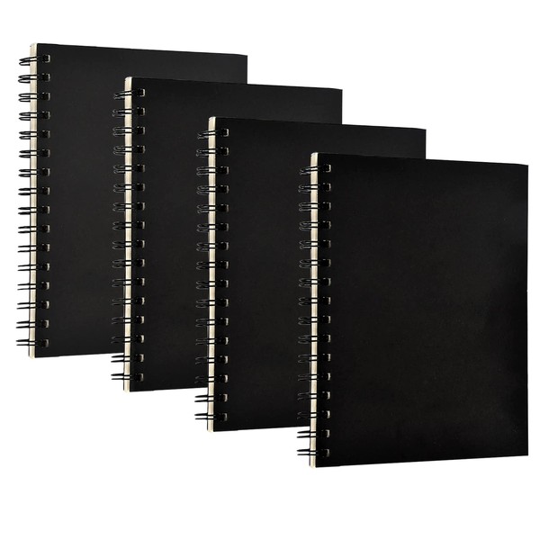 4 Pack A5 Sketchbook, Spiral Cover Blank Page Sketch Book Sketch Pad, Kraft Cover Sketch Drawing Pad Art Book, 50 Sheets Blank Paper Sketch Book for memos, Painting and Graffiti(Black)