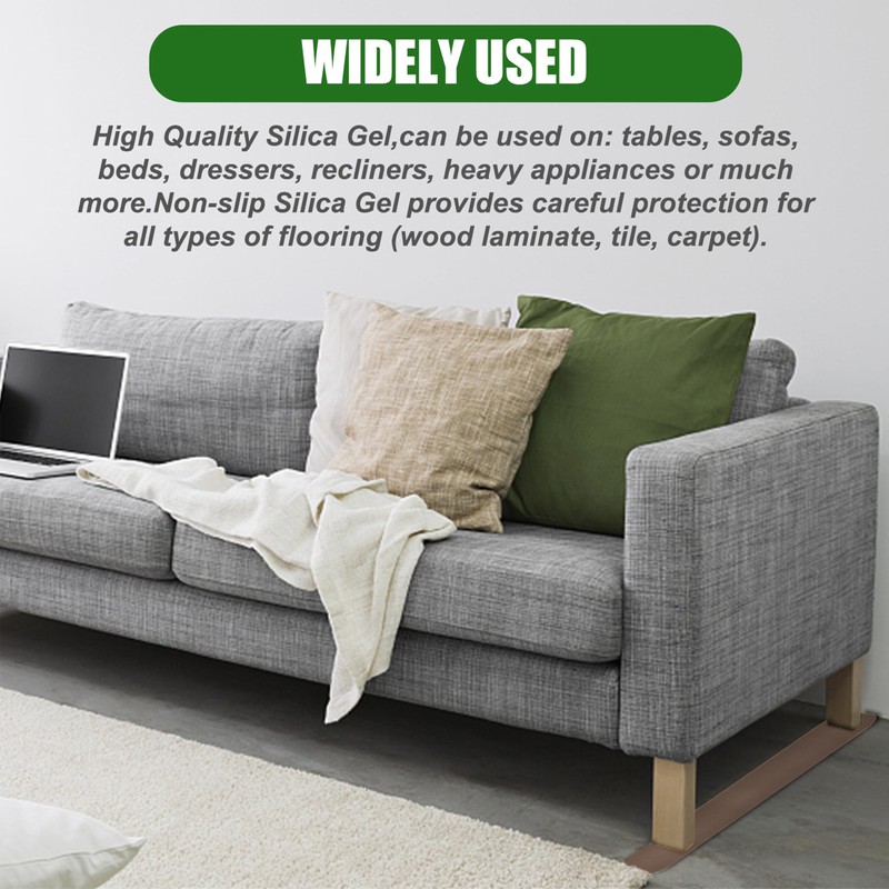 - Easy to Use: Just put the strips under your furniture's leg and no adhesive needed,We want your furniture to stay beautiful and functional, so we designed our furniture grippers to leave no sticky residue.