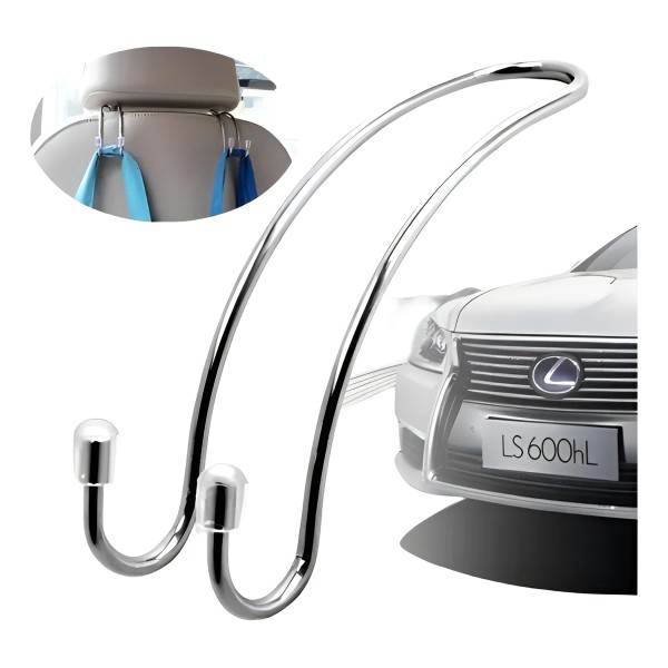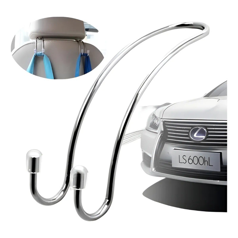 - GANCHO METÁLICO MÚLTIPLE: Diseño de doble gancho, utilizado para la organización del automóvil. Múltiples opciones de configuración: pueden colgar desde la parte delantera o trasera del reposacabezas o desde una manija superior.