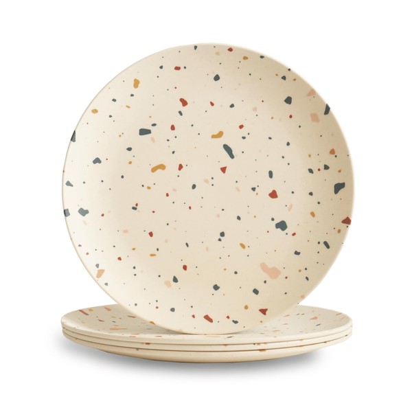 4-Pack Bamboo Fiber Dinner Plates - Alternative for Plastic Plates, Toddler & Kids Plates, Dishwasher Safe, Food-Grade Bamboo Plates Reusable - Lightweight Dinner Plates (Fiesta 8")