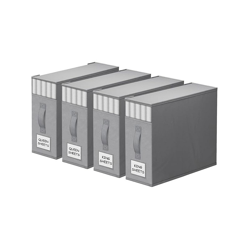 4 Pack Bed Sheet Closet Organizers and Storage,Sturdy Foldable Storage Containers with Window and Label,Storage and Organization for Bedding Sheets,Duvet Covers,Blankets (Grey)
