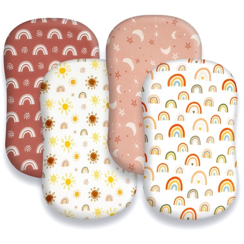 4 Pack Boho Baby Sheets Unisex Fitted Baby Sheets Neutral for Baby Boys or Girls Boho Sunshine and Rainbow Style (Bassinet Sheets)