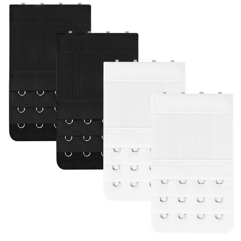 4 Pack Bra Extender 4 Hook - Elastic Bra Extenders Soft Elastic Bra Strap Extender, 2 Black + 2 White