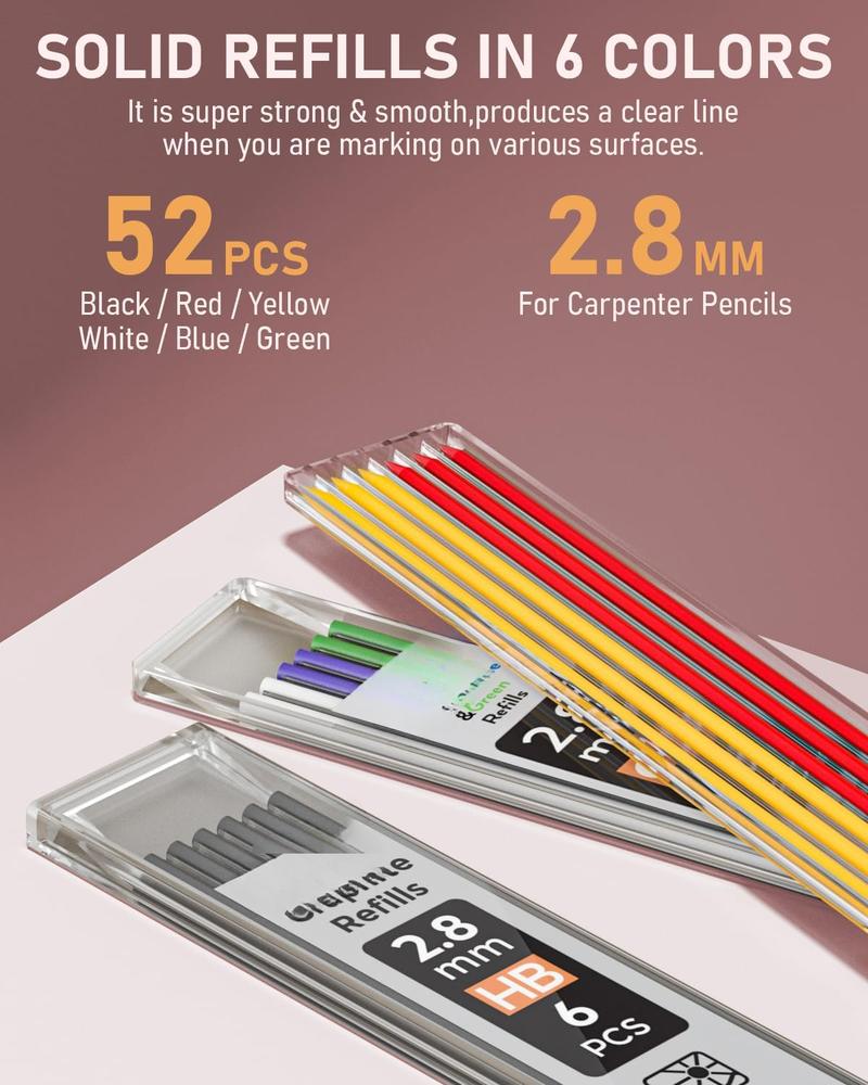 High Quality Lead Refill in Black and Colors: The carpenters pencil comes with 52 black and colored refills, which is much thicker and stronger during the drawing process of construction work, it will not break or easily. Different size and colored pencil leads are suitable for marking on different surfaces