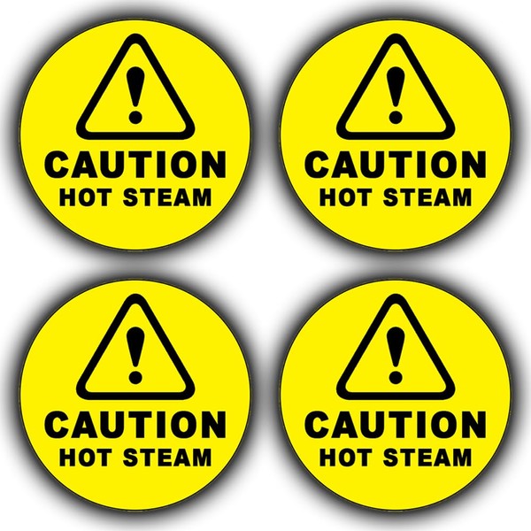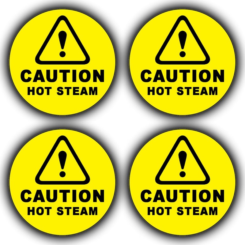 4 Pack - Caution Hot Steam Stickers - Waterproof Vinyl Safety Decals Labels - 50mm x 50mm