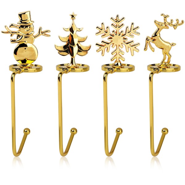 4 Pack Christmas Stocking Holders,Xmas Metal Hooks Grip Clips for Hanging Christmas Stockings,Non Slip Christmas Stocking Hangers for Fireplace Mantel Decorations (Gold)