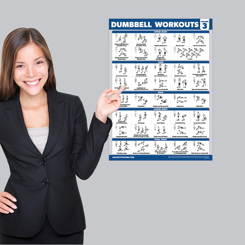 Palace Learning 4 Pack - Dumbbell Workout Posters Volume 1, 2 & 3 + Barbell Exercise Chart - Set of 4 Posters (LAMINATED, 18" x 24")