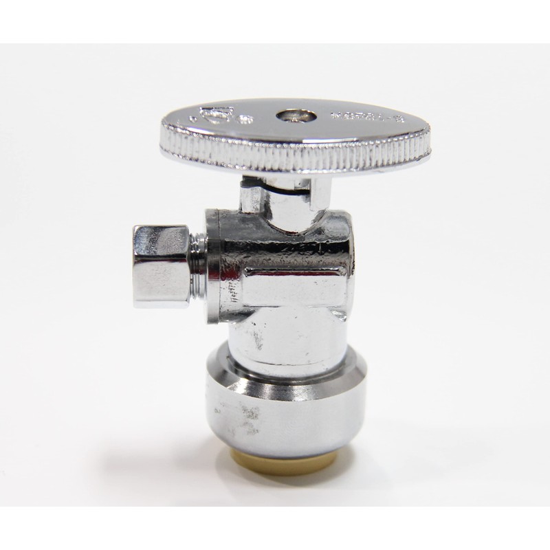 4-Pack EFIELD Push Fit 1/4 Turn Stop Valve Water Shut Off 1/2 Push x 3/8 Inch Compression With Disconnect Clip, Chrome Plated
