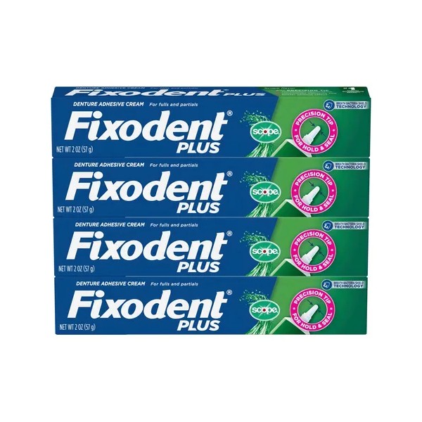 4 Pack Fixodent Plus Crema Adhesiva Dental C/ Sabor Scope