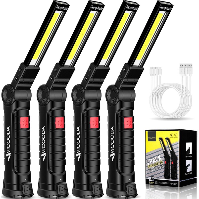 4 Pack Flashlights, LED Work Light, USB C Rechargeable Work Light with Magnetic Base and Hanging Hook, 360°Rotate 5 Modes Flashlights for Car Engines Repair, Emergency and All Tight Spots (4 Pack)