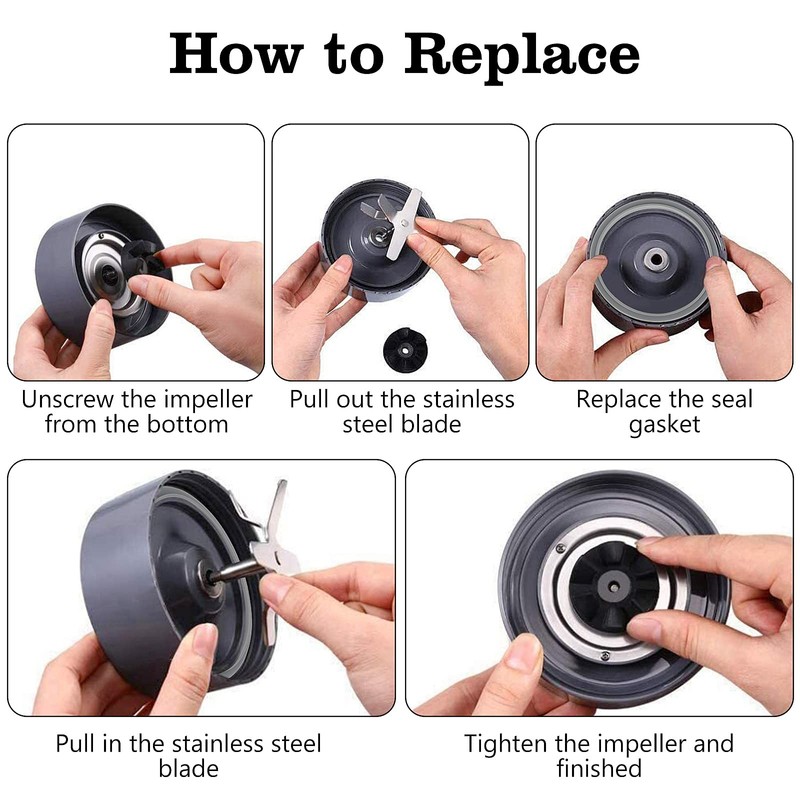 - Easy to Install: Unscrew the rubber impeller from the bottom and pull out the stainless steel blade firstly, then remove the old gasket and replace it with a new one, reassemble the parts that you just removed at last. No tool required, simple and quick.