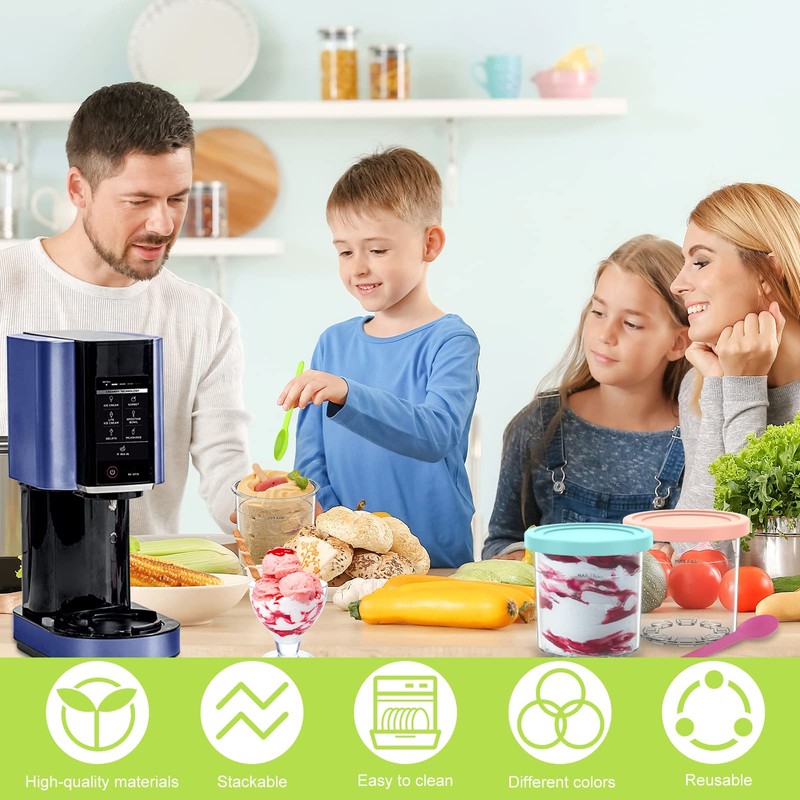 4 Pack Ice Cream Tubs for Ninja Creami, Stackable Ice Cream Pints Container Compatible with NC301/NC300/NC299AMZ/CN301CO Series, Ice Cream Storage Cup with Lids and Scoops for Home Kitchen (A)